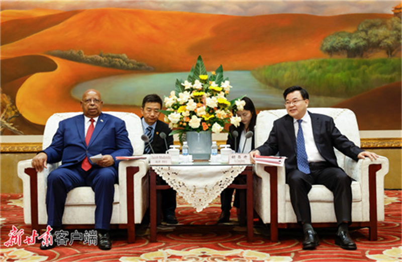 5月15日下午,省委书记、省人大常委会主任胡昌升在兰州会见了津巴布韦众议长穆登达一行。(记者孟捷)