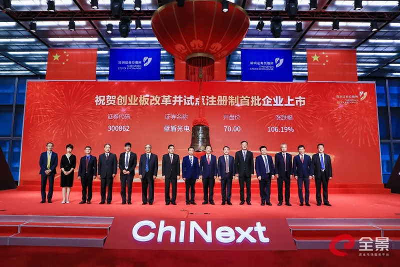 2020年8月24日,华龙证券保荐与主承销的安徽蓝盾光电子股份有限公司(股票代码:300862,股票简称:蓝盾光电)在深圳证券交易所创业板成功挂牌上市,成为注册制下创业板首批18家挂牌企业之一。中共中央政治局委员、国务院副总理刘鹤发表书面致辞,中共中央政治局委员、广东省委书记李希,中国证监会主席易会满出席上市仪式并致辞,广东省省长马兴瑞,深圳市委书记王伟中出席上市仪式。全国人大财经委、全国人大常委会法工委、最高人民法院、国家发改委、科技部、工信部、商务部、国资委等单位有关负责同志出席上市仪式。球友会·千亿球友会(中国)官方网党委书记、董事长,华龙证券党委书记、董事长陈牧原作为蓝盾光电保荐机构代表出席了挂牌仪式。蓝盾光电子前身是成立于2001年的铜陵蓝盾光电子有限公司,于2005年整体变更设立为股份有限公司,是国内智能交通行业领先的产品供应商和系统集成商。公司主营高端分析测量仪器制造、软件开发、系统集成及工程、运维服务、数据服务和军工雷达部件,产品和服务主要应用于环境监测、交通管理、气象观测和军工雷达等领域。客户主要为全国环境监测、公安、交通、气象等政府部门、企业及科研单位和部队等。公司在光学、电子及信息技术、精密机械制造等领域积累了五十余年的科研和生产经验,是我国仪器仪表行业内具有较强自主创新能力的成长型创新创业企业。蓝盾光电子本次IPO公开发行股票3,297万股,发行价格为33.95元/股,募集资金总额约为11.19亿元。本次募集资金投资项目聚焦于公司近年增长速度较快的环境监测领域。募投项目的实施,将进一步提升公司研发实力、提升公司生态环境监测全产业链综合服务能力、加快公司承担的国家重大科研专项的产业化进程,有利于公司抢抓环境监测公共服务供给模式改变而带来的市场机遇,巩固公司环境监测运维市场行业地位。华龙证券投行团队依据多年深耕资本市场积累沉淀下来的丰富经验,通过深入调研和专业高效的尽职调查工作,为蓝盾光电子量身打造了上市方案。从首次申报到历次反馈、再到顺利过会,华龙证券与蓝盾光电子建立了互信共赢的伙伴关系,并助力蓝盾光电子驶入资本快车道,借助资本市场的优质资源配置能力进一步快速、健康、可持续发展,做大做强!华龙证券北京分公司(投资银行)已在北京、上海、深圳、杭州、兰州、安徽等地区设立了业务分部,项目遍及全国。投资银行团队业务经验丰富、职业操守良好、工作规范严谨、进取精神强烈。经过二十年的磨砺,华龙证券投资银行业务取得了长足的发展:专业队伍不断壮大,专业技术和专业经验不断积累,专业化的服务水平不断提高,在很多细分领域和细分行业华龙现已走到市场前沿,证券研发、营销、创新等综合实力不断提升,公司已经具备大型股票、债券发行项目运作的实力和经验,并和一批国际性企业龙头建立了长期的战略合作关系。华龙证券将始终秉承客户价值最大化这一发展宗旨,致力于为客户提供专业化、精准化、多元化的服务。“以您为本,成人达己”,华龙证券愿与您携手同行,共创伟业。